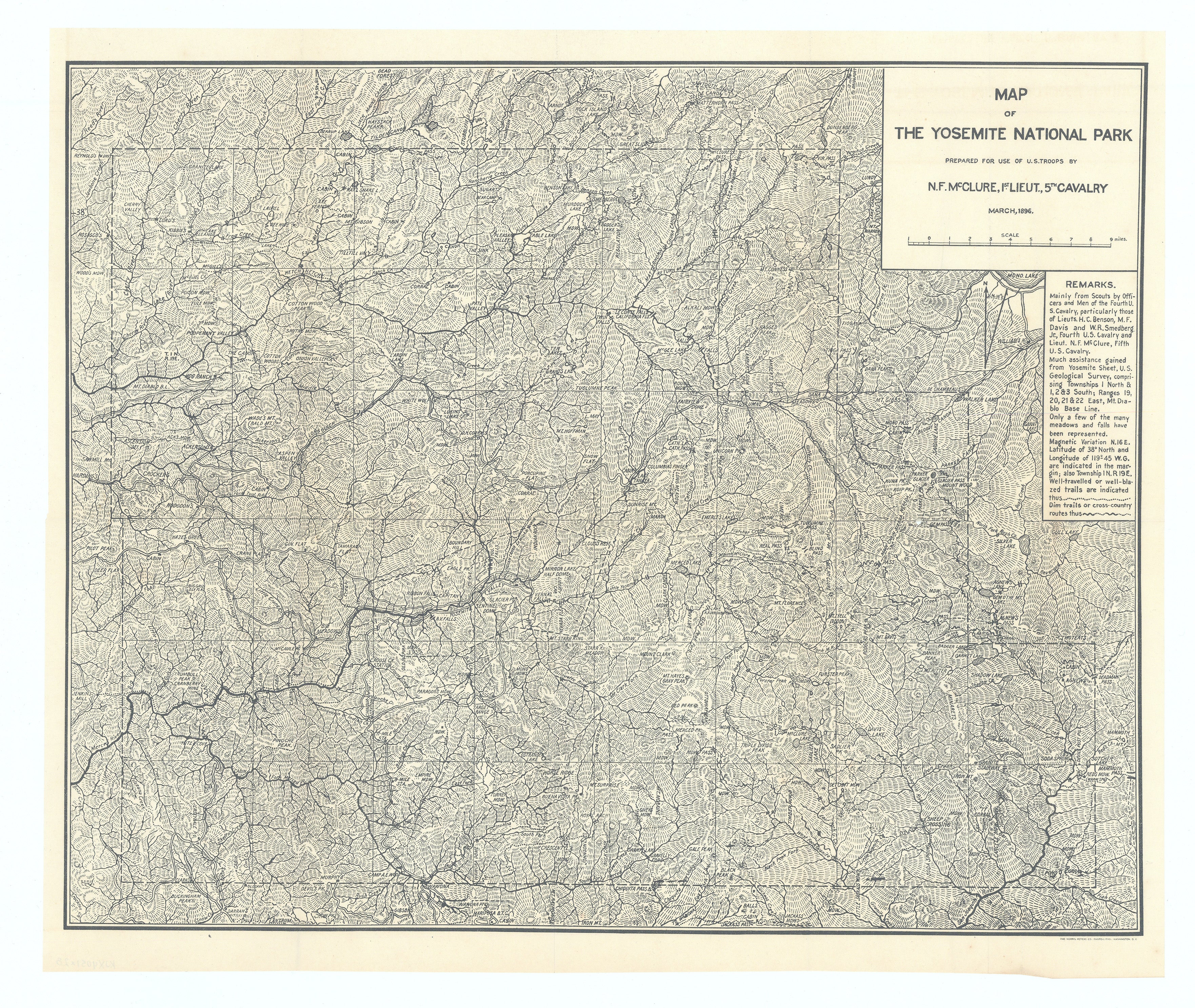 • Title: Map of the Yosemite National Park prepared for use of U.S. troops by N.F. McClure, 1st Lieut., 5th Cavalry March 1896