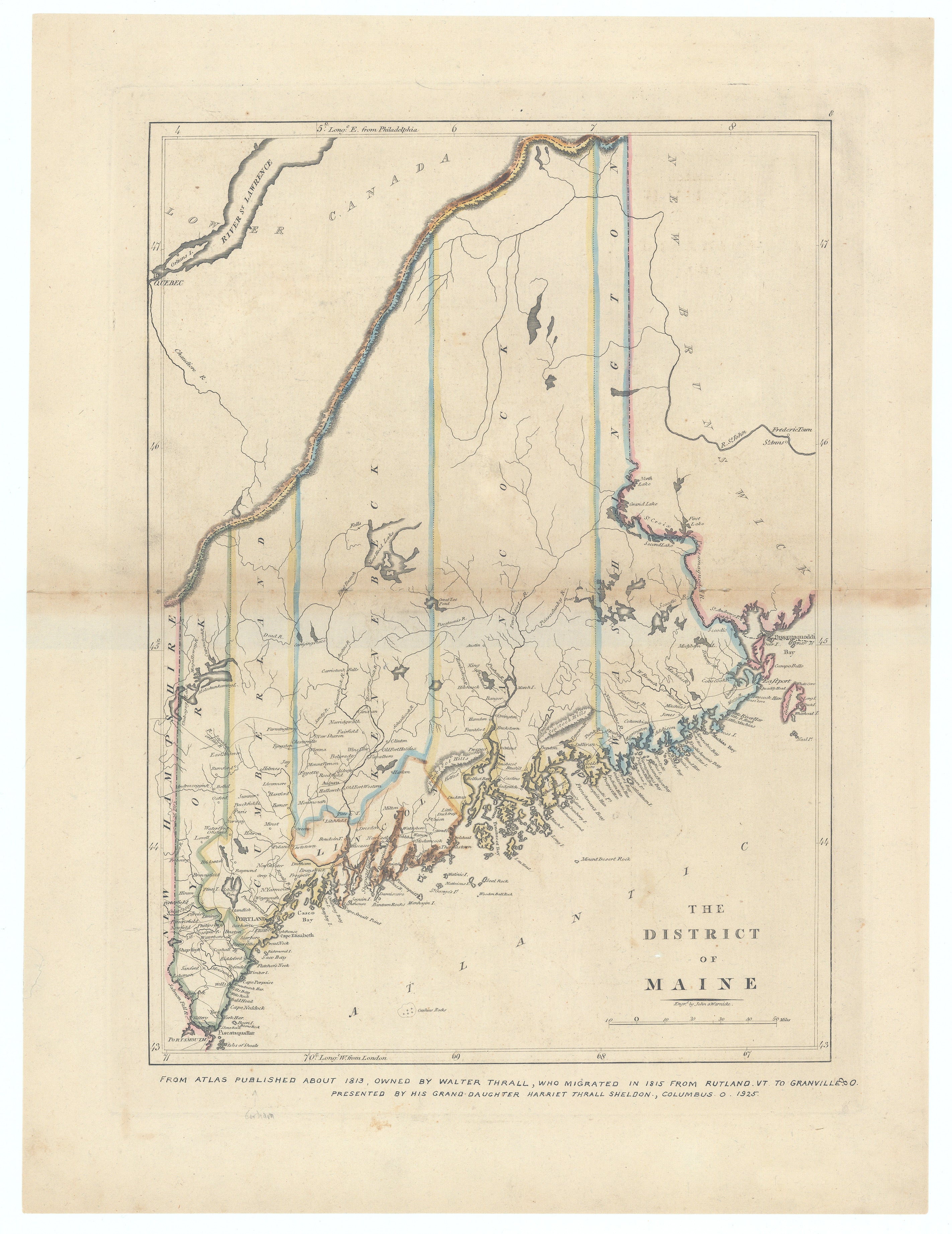 Published just after the War of 1812, this from Carey's Atlas represented the best American cartographic work of the period. The map shows the development of the District of Maine (then part of Massachusetts) at the time of the War of 1812.