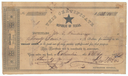 • Fifty Dollars: Republic of Texas 1840