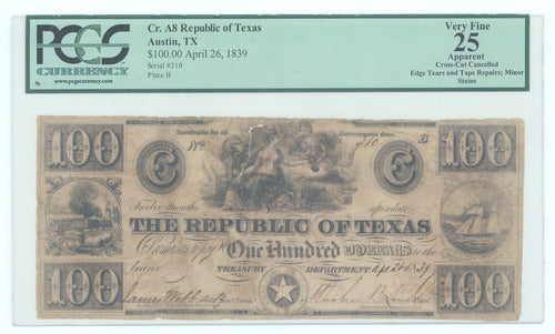 • One Hundred Dollars: Republic of Texas, 1839