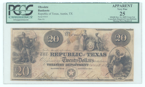 • Twenty Dollars: Republic of Texas, 1839