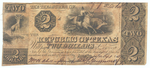 • Two Dollar Change Note: Republic of Texas, 1841