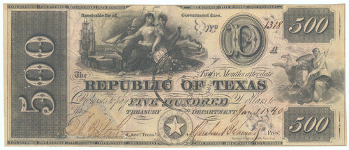 • Five Hundred Dollars: Republic of Texas, 1840