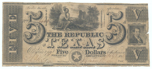 • Five Dollars: Republic of Texas, 1840